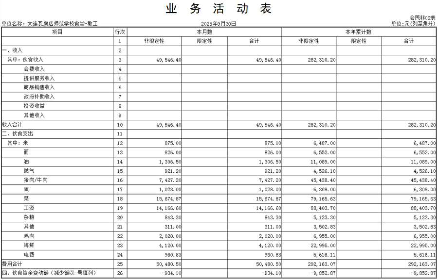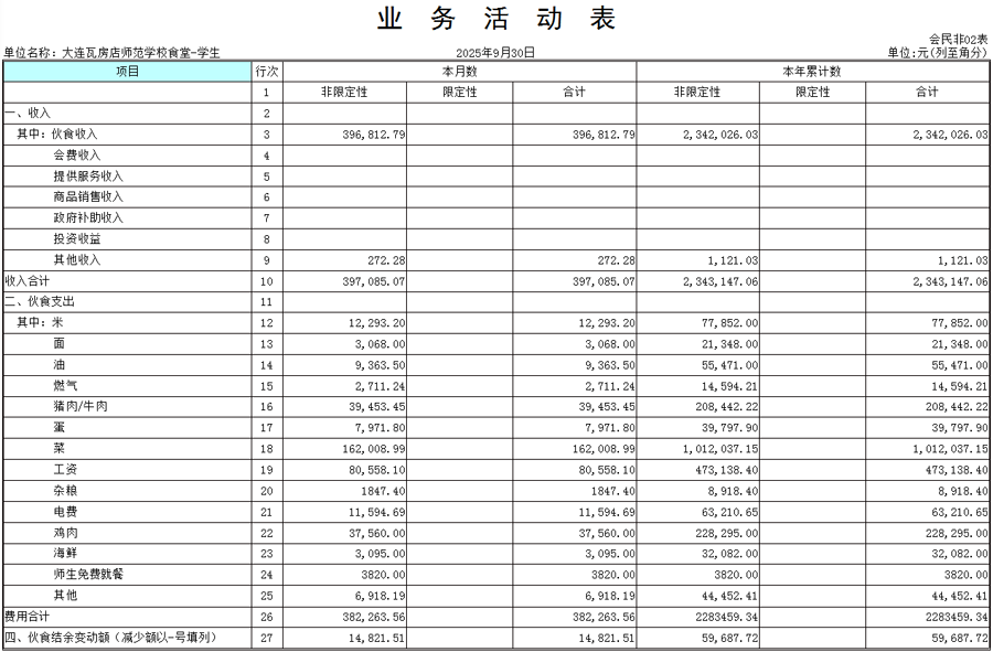 收支情况核算日期:2025年9月1日至2025年9月30日。